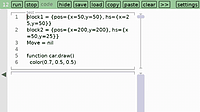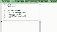 Perhaps my favorite program. curr, new = {}, {} for x=1,Safe_width do table.insert(curr, {}) table.insert(new, {}) for y=1,Safe_height do table.insert(curr[x], 0) table.insert(new[x], 0) end end -- R...