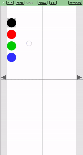-- We have a surface we view through a viewport. -- The surface has the same dimensions as the viewport: Carousel's Safe_width x Safe_height. local w = Safe_width/2 local h = Safe_height/2 -- (w, h) in surface coordinates is at (center.x, center.y) in viewport coordinates local center = {type='viewport', x=w, y=h} local vel = {x=0, y=0} local mx0,my0 local V = 2 -- velocity coefficient when dragging function s(vp) assert(vp.type == 'viewport') return {type='surface', x=w - center.x + vp.x, y=h - center.y + vp.y} end function v(sp) assert(sp.type == 'surface') return {type='viewport', x=center.x - w + sp.x, y=center.y - w + sp.y} end local points = {} -- in surface coordinates local State = {name='init'} -- move draw local niters = 1000000 local K = 1 -- Hooke's constant local f = 0.01 -- 0 = no friction local colors = { {0,0,0}, -- black {1,0,0}, -- red {0,1,0}, -- green {0.2,0.2,1}, -- blue } local color_index = 1 -- black at the start function draw_colors() for i, c in ipairs(colors) do if i == color_index then color(0.8,0.8,0.8) rect('fill', 50-20, 50+i*50-20, 40,40, 2,2) end color(unpack(c)) circle('fill', 50, 50+i*50, 20) end end function change_color(mx,my) for i, c in ipairs(colors) do if dist(mx,my, 50, 50+i*50) < 20 then color_index = i return true end end end function car.draw() draw_colors() color(0.5,0.5,0.5) rect('line', center.x-w, center.y-h, w*2, h*2) line(center.x-w, center.y, center.x+w, center.y) line(center.x, center.y-h, center.x, center.y+h) color(0,0,0) local p1 for _,p2 in ipairs(points) do color(unpack(p2.color)) local vp2 = v(p2) if p1 then local vp1 = v(p1) line(vp1.x, vp1.y, vp2.x, vp2.y) end p1 = p2 end if State.name == 'draw' then circle('fill', w,h, 2) end end function car.mousepressed(mx,my) if change_color(mx,my) then return end mx0,my0 = mx,my if State.name ~= 'init' then return end points = {} State = {name='move', x=mx, y=my} end function car.mousereleased(mx,my) if mx0 == nil then return end vel.x = (mx-mx0)*V vel.y = (my-my0)*V mx0,my0 = nil end function car.update(dt) local s = State.name if s == 'move' then umove(dt) elseif s == 'draw' then udraw(dt) end end function umove(dt) if abs(center.x - 2*w + State.x) < 1 then State = {name='draw', iters = 0} return end center.x = center.x - (State.x - w)*dt center.y = center.y - (State.y - h)*dt end function udraw(dt) State.iters = State.iters+1 if State.iters >= niters then State = {name='init'} center = {type='viewport', x=w, y=h} vel = {type='viewport', x=0, y=0} return end local ax = -K*(center.x-w) local ay = -K*(center.y-h) vel.x = (1 - f*dt) * (vel.x + ax*dt) vel.y = (1 - f*dt) * (vel.y + ay*dt) local x = center.x + vel.x*dt local y = center.y + vel.y*dt local p = s{type='viewport', x=w, y=w} p.color = colors[color_index] table.insert(points, p) center.x, center.y = x, y end function dist(x1,y1, x2,y2) return math.sqrt((x1-x2)^2 + (y1-y2)^2) end